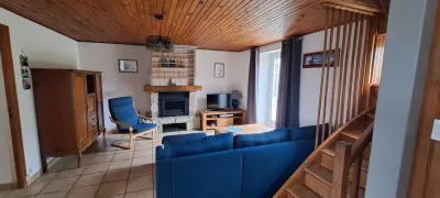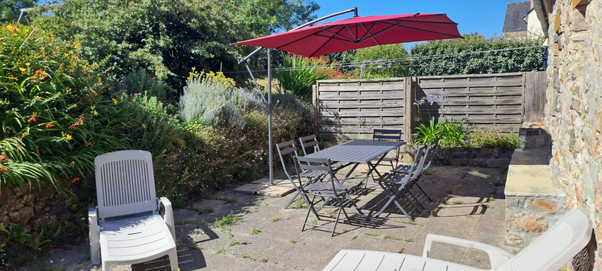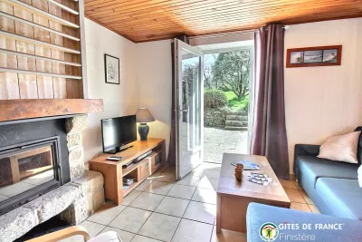 A 1,3km de la plage du Poul et du GR 34, maison mitoyenne à un autre gîte avec terrasse et jardin fleuri, dans un petit hameau à l'entrée de la Presqu'île de Crozon. Au rez-de-chaussée, un salon avec cheminée (insert) un coin cuisine, un coin repas, un wc séparé et une salle de bain. A l'étage, 2 chambres avec chacune 1lit 2 personnes 140x190. A l'extérieur, une terrasse et par accès surélevé, un jardn commun avec balançoire.