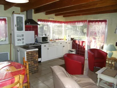 Maison mitoyenne à un autre gîte proche des propriétaires et de leurs chambres d'hôtes. Rdc : Séjour-cuisine et poêle, 1ch 1lit 2p avec sde, wc. Etage : 1ch 1lit 2p + douche et lavabo, 1ch 1lit 1p + lavabo, wc. Chauf élec. Jardin avec salon, barbecue, terrasse. Portique, jeux et babyfoot communs. Loc vélos.